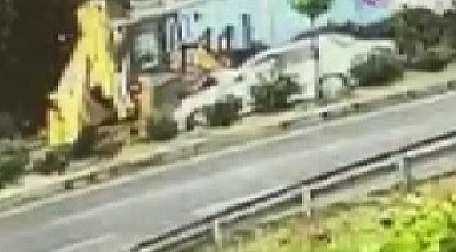 kaydedildi. Görüntülerde iş makinesinin refüjü aşarak karşı yöne geçtiği esnada