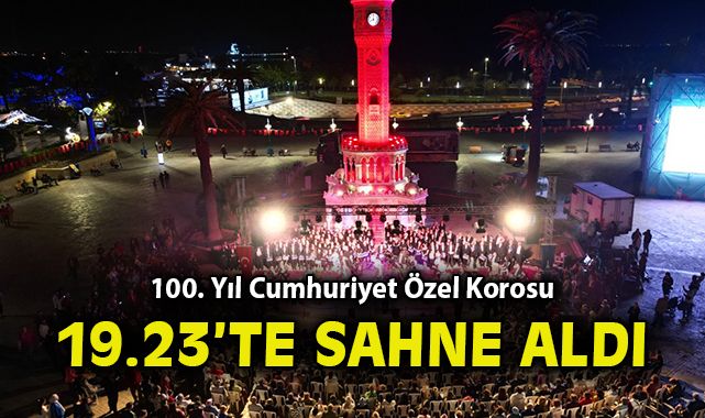 Cumhuriyet’in 100. yıl coşkusu İzmir’den yankılanmaya devam ediyor. İzmir Büyükşehir Belediyesi, dün akşam Konak Atatürk Meydanı’nda saat 19.23’te 100. Yıl Cumhuriyet Özel Korosu konseri düzenledi. Konsere İzmir Büyükşehir Belediyesi Genel Sekreter Yardımcısı Ertuğrul Tugay, ESHOT Genel Müdürü Erhan Bey, İtfaiye Dairesi Başkanı İsmail Derse de katıldı.