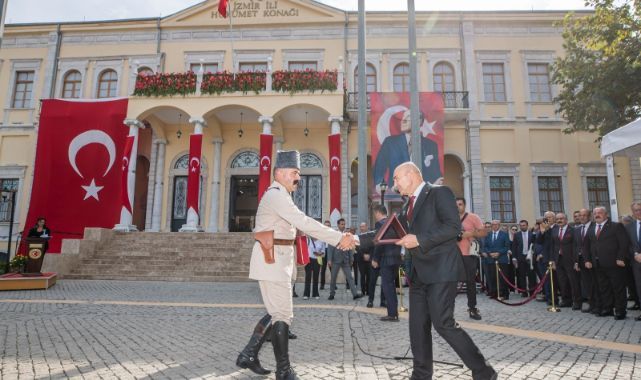 9 Eylül törenleri kapsamında Konak Atatürk Meydanı'nda düzenlenen bayrak törenine İzmir Valisi Süleyman Elban, Ege Ordusu ve Garnizon Komutanı Orgeneral Kemal Yeni, İzmir Büyükşehir Belediye Başkanı Tunç Soyer, milletvekilleri, muhtarlar, siyasi partilerin, kamu kuruluşları, üniversiteler ve sivil toplum örgütlerinin temsilcileri katıldı.