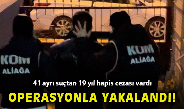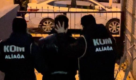 İzmir Emniyet Müdürlüğü Organize Suçlarla Mücadele Şube Müdürlüğü ve Aliağa Organize Büro Amirliği ekiplerince, aranan şüphelilerin yakalanmasına yönelik çalışma yapıldı. Yapılan çalışmalar neticesinde; aralarında uyuşturucu madde ticareti, kasten yaralama, hırsızlık, tehdit, gasp, mala zarar verme dahil 41 ayrı suçtan kaydı bulunan ve hakkında 19 yıl kesinleşmiş hapis cezası olan suç makinesi O.K. polis ekipleri tarafından yakalandı.