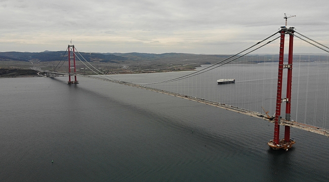Gelibolu'nun Sütlüce mevkii arasında yapımı süren 1915 Çanakkale Köprüsü'nün