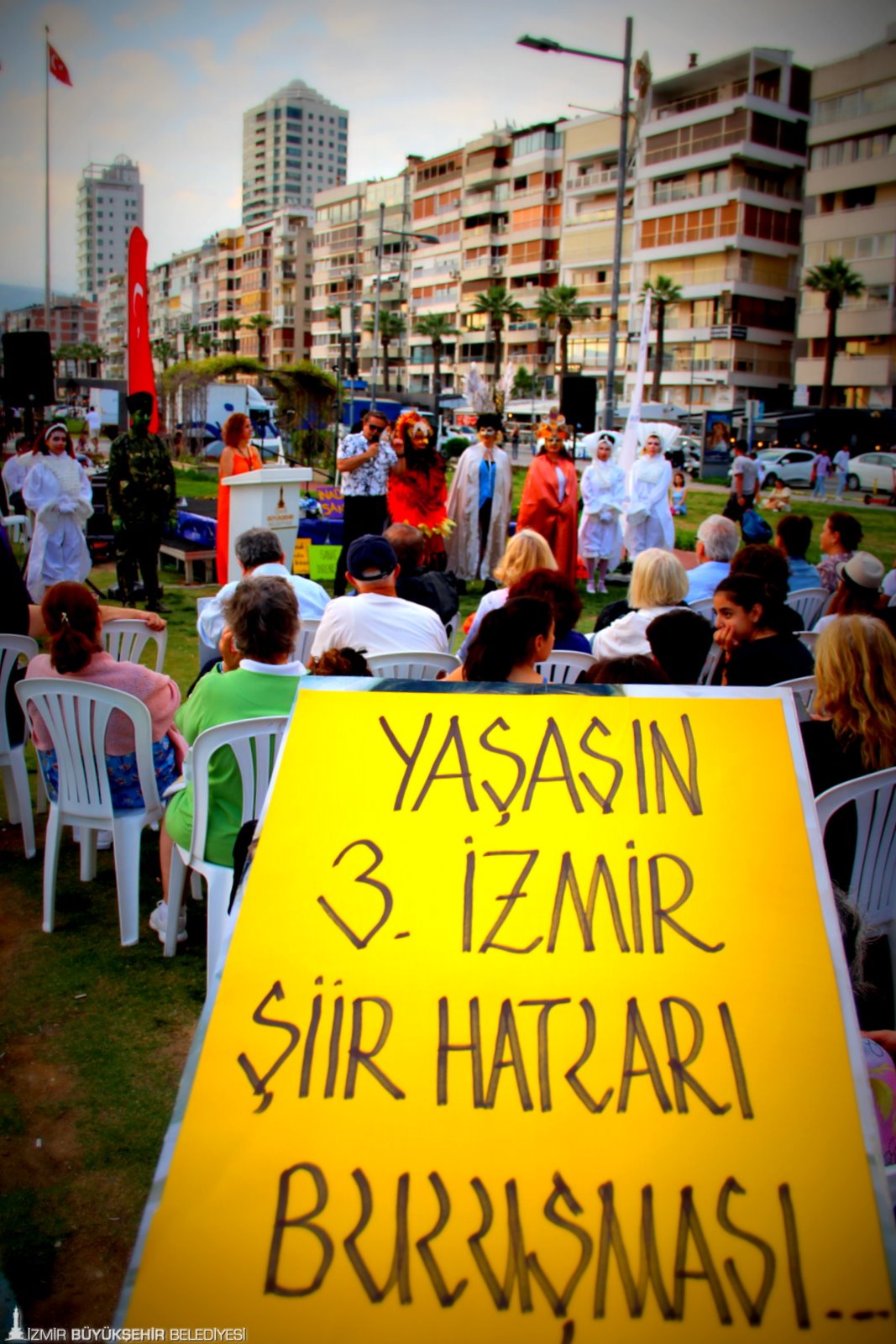 İzmir Büyükşehir Belediyesi’nin bu yıl üçüncüsünü düzenlediği Şiir Hatları Buluşması Alsancak İskelesi önünde başladı. Etkinliğin açılışına Kent Konseyi Başkanı Nilay Kökkılınç, Apikam Müdürü Tuğba Kılıçkaya ve sanatseverler katıldı. Şair ve yazar Namık Kuyumcu'nun koordinatörlüğünde düzenlenen buluşmada şair Dilek Özkan müzik eşliğinde şiir okudu. Gecede ateş dansı ve mim gösterisi ile şiir/mask kostümlü sunum yapıldı. Buluşma Sokak Sanatları Atölyesi'nin Nazım Hikmet’in “Davet” adlı şiiriyle kurgulanan "Atlı Şiir Gösterisi" ile sonlandı.