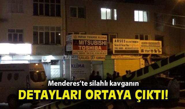 Olay, akşam saat 18.00 sıralarında Menderes ilçesi Cüneytbey Mahallesi Ürüncü Sokağı'nda 2 katlı binanın en üst katında bulunan kahvehanede meydana geldi. Edinilen bilgiye göre, alacak verecek mevzusu bulunan iki grup konuşmak için kahvehanede bir araya geldi. İki grup arasında çıkan tartışmanın silahlı kavgaya dönüşmesi üzerine kahvehanede silahlı çatışma çıktı. İki tarafın da silah kullandığı kavgada 7 kişinin tabancayla vurulduğu öğrenildi. Durumun 112 Acil Çağrı Merkezine bildirilmesi üzerine olay yerine çok sayıda polis ve ambulans sevk edilirken, sağlık ekipleri tarafından yapılan incelemede, silahla vurulan Timuçin Altınel, Süreyya Bayrak, Barış Coşgun, Rıdvan Bağcalı ve Ozancan Doğan'ın hayatını kaybettiği belirlendi. Kavgada yaralanan M.Y. ve A.K. ise sağlık ekipleri tarafından ambulansla hastaneye kaldırıldı.