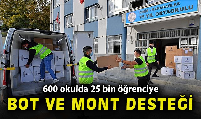 Öğrenciye katkı, esnafa can suyuİzmir Büyükşehir Belediyesi tarafından 2022-2023 Eğitim-Öğretim dönemi için 25 bin mont ve bot dağıtılıyor. İzmir Bornova Mesleki Eğitim Merkezi’nden alınan bot ve montların üretimi için gerekli malzemeler İzmirli esnaflardan tedarik ediliyor. Bu doğrultuda tekstil ve ayakkabı sektöründeki esnafa bu eğitim-öğretim döneminde 13 milyon 500 bin TL’lik katkı sunulmuş oldu.