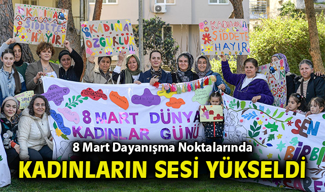 İzmir Büyükşehir Belediyesi, 8 Mart Dünya Kadınlar Günü etkinliklerini dört farklı noktada kurulan 8 Mart Dayanışma Noktaları ile başlattı. İzmir Büyükşehir Belediye Başkanı Dr. Cemil Tugay’ın eşi Öznur Tugay da etkinlik alanında kadınlarla birlikte 8 Mart pankartları hazırladı.