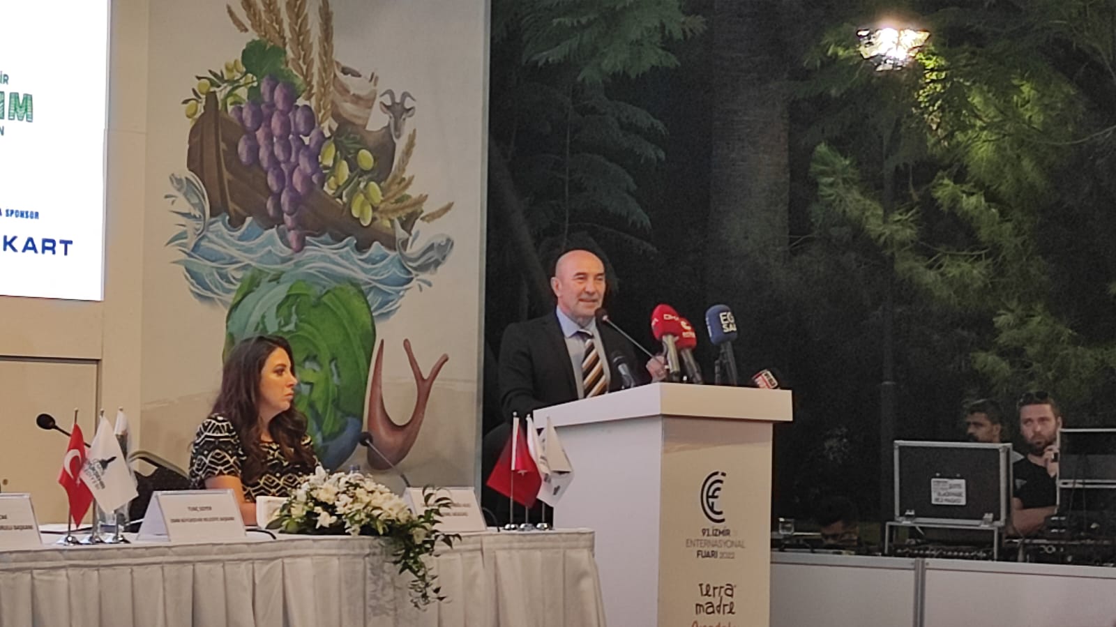 Tanıtım toplantısında konuşan Başkan Tunç Soyer, “Heyecan verici bir buluşmanın öncesinde yine ilk sunumu sizlere yapmanın büyük gururunu yaşıyorum. Hepiniz hoş geldiniz. Cumhuriyet mirası dendi, evet fuar bir cumhuriyet mirasıdır. İktisat kongresinin hemen sonrasında başlamış, panayıra dönmüş ve fuarla buluşmuş. Bugün dünya ülkeleri EXPO peşinde koşar, bunun için İzmir’de çokça emek verdi. Biz 91 yıldır küçük EXPO düzenlemeye devam ediyoruz. 91 yıldır kapılarını hiç kapatmamış. 12 Eylül’de sadece bir gün kapalı kalmış. Bu gelenek bu miras son derece kıymetli. Biz de buna sonuna kadar sahip çıkacağız. 91. yıldır düzenlenen fuarın her sene çıtasını yükselmeniz gerekiyor, yapmazsınız olmamızın manası yok. Terra Madre ile bu nedenle buluşturmak istedik. Dünyanın en büyük gastronomi fuarı. Gastronomi tarımla, kültürle, sağlıkla, turizmle, küresel iklim kriziyle hepsinin buluşma noktası. Dünyanın odağında şu anda gastronomi var. Aslında 91. kez kapılarını açarken büyük bir gündeme parmağımızı basmış oluyoruz. Böyle bir organizasyona ev sahipliği yapmak son derece kıymetli” dedi.