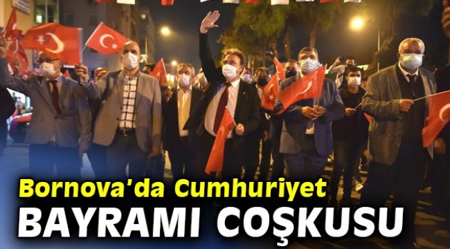 Sabah Bornova Belediyesi Kültür Merkezi’ndeki tebrik töreni ile başlayan kutlamalar, Özkanlar’dan Bornova Cumhuriyet Meydanı’na uzanan Fener Alayı ile devam etti. Bornova Belediye Başkanı Dr. Mustafa İduğ, koronavirüs salgını nedeniyle sınırlı katılımcı ile gerçekleştirilen kortejde, CHP İzmir Milletvekili Prof. Dr. Kamil Okyay Sındır ve CHP Bornova İlçe Başkanı Ertürk Çapın ile birlikte halkı selamladı. Bornova Belediye Bandosu da gün içinde mahalle mahalle gezerek çaldığı marşlarla tüm Bornovalıları coşkuya ortak etti. Kutlamalar tebriklerin kabulü ile başladı Bornova’da Cumhuriyet Bayramı kutlamaları, Bornova Belediyesi Kültür Merkezi’nde düzenlenen tebrik töreni ile başladı. Bornova Kaymakamı Fatih Genel, Bornova Belediye Başkanı Dr. Mustafa İduğ ve 57. Topçu Tugayı Komutanı Tuğgeneral Halil Ünver, ilçe protokolünün tebriklerini kabul etti. Kaymakam Fatih Genel, günün anlam ve önemini belirten bir konuşma yaptı. Koronavirüs salgınının bir an önce sona ermesini dileyen Genel, “Milli bayramlarımızı daha büyük coşkuyla kutlamak temennisiyle Cumhuriyetimizin kuruluşunun 97. Yılı kutlu olsun” dedi.Belediye bandosu Bornova sokaklarındaBornova Belediyesi düzenlediği etkinliklerle 29 Ekim’in coşkusunu ilçenin dört bir yanında yaşattı. Bornova Belediye Bandosu Çamdibi ve Pınarbaşı’ndaydı. Zafer şarkıları ve marşlar söylendi, yapılan anonslarla halkın Cumhuriyet Bayramı kutlandı. Bornovalılar bandoya, ellerindeki bayraklarla evlerinin balkonlarından eşlik etti.Özkanlar’dan Bornova Merkeze19.23’te düzenlenen Fener Alayı’nda coşku daha da arttı. Koronavirüs salgını tedbirleri çerçevesinde gerçekleşen kortejde, Bornova Belediye Başkanı Dr. Mustafa İduğ, CHP İzmir Milletvekili Prof. Dr. Kamil Okyay Sındır, CHP Bornova İlçe Başkanı Ertürk Çapın ve sınırlı sayıdaki katılımcıyla birlikte halkı selamladı, bayramlarını kutladı. Fener alayı Özkanlar’dan başlayıp Bornova Cumhuriyet Meydanı’nda son buldu. Bornovalılar, Ayyıldızlı bayraklarla kırmızıya boyanan Mustafa Kemal Caddesi boyunca heyecana yol kenarlarından ve evlerinin balkonlarından katıldı. Kortejin bittiği Bornova Cumhuriyet Meydanı’nda gerçekleştirilen flamenko performansı büyük beğeni topladı. Bu gösterinin ardından Bornova Belediyesi Halk Oyunları Topluluğu da zeybek gösterisi sundu. Bornova Belediye Başkanı Dr. Mustafa İduğ ve CHP İzmir Milletvekili Prof. Dr. Kamil Okyay Sındır, coşku dolu programın sonundaki meydandaki vatandaşlara seslendi. Sındır: Cumhuriyete sahip çıkmak borcumuzBaşta Büyük Önderimiz Gazi Mustafa Kemal Atatürk ve silah arkadaşları olmak üzere tüm Milli Mücadele kahramanlarını anarak konuşmasına başlayan Sındır, “Cumhuriyet, Kuşatılmış bir imparatorluğun ve kuşatılmış bir milletin bağımsızlık ve özgürlük mücadelesi sonrasında kurulmuş, demokrasi, laiklik, sosyal ve hukuk devleti anlayışı ile taçlandırılmıştır. Hepimizin bu Cumhuriyete sahip çıkması gerekiyor. Cumhuriyeti kuranlara borcumuzdur bu. Onlardan aldığımız bu emaneti yaşatmak hepimizin görevi. Cumhuriyet Bayramımız kutlu olsun. Yaşasın Türkiye Cumhuriyeti” dedi.Başkan İduğ’dan coşkulu konuşmaBornova Belediye Başkanı Dr. Mustafa İduğ da coşku dolu şu konuşmayı yaptı;