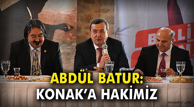 Narlıdere’deki başarılarından bahseden Batur,“ En önemli başarımız, vatandaşlarımızın belediyeye geldiklerinde kendilerini evlerinde gibi hissetmeleridir.Herkesi kapıda güler yüzlü karşıladık.Sosyal belediyecilikte bu çok önemlidir. Konak’ta da aynı şekilde belediye başkanı olarak vatandaşlarımızla iletişimimizi doğrudan sağlayacağız. Hesap verebilir bir kent olacağız. 3 ayda bir alacak verecek tablosunu açık bir şekilde internet sitemizde yayınlayacağız. Konak’a değer katan çalışmalarımız olacak. Özellikle kadınlara, engellilere ve gençlerimize yönelik projelerimiz var.Konak’ta bir engelli masası dahi yok. Bunu ilk 1 ay içinde kuracağız. Her kesimden vatandaşımızın bize ulaşabilme noktasındaki organizasyonu oluşturacağız. Konak’a hakimiz. Her gün farklı mahalledeyiz. Günde en az 10 bin atmadan eve dönmüyoruz. En az yüzde 60-65 civarında oy alacağımızı tahmin ediyorum” dedi.