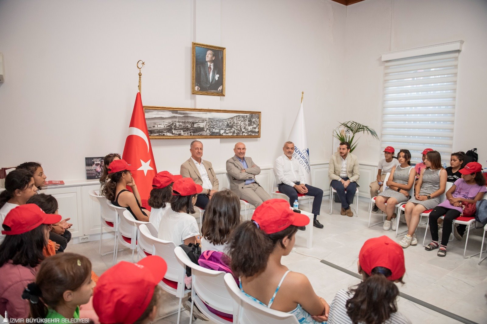 Adıyaman Yaylakonak Belediyesi’nde görev yapan iki personelle birlikte 15 Ağustos Salı günü İzmir’e gelen çocuklar ilk olarak Kemeraltı, Saat Kulesi, Atatürk Müzesi ve Kordon’u gezdi. Minikler günü havuza girerek sonlandırdı. İkinci gün ise Karşıyaka Atölye gezisi, Sasalı Doğal Yaşam Parkı, Karşıyaka Evrensel Çocuk Müzesi, vapur ile körfez gezisine katılan grup havuz etkinliği sonrasında Başkan Tunç Soyer’i Egemenlik Evi’nde ziyaret etti. Ziyaret programında Başkan Soyer'e İzmir Büyükşehir Belediyesi Genel Sekreter Yardımcısı Ertuğrul Tugay, İZELMAN A.Ş. Genel Müdürü Burak Alp Ersen, İzmir Büyükşehir Belediyesi Sosyal Projeler Dairesi Başkanı Anıl Kaçar da eşlik etti.