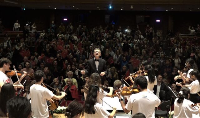 100. yıl coşkusunu yansıtan birçok eserin seslendirildiği konser, İzmir Marşı ile son buldu. Salonun dolduran müzikseverler orkestraya ellerinde Türk Bayrakları ile eşlik etti.