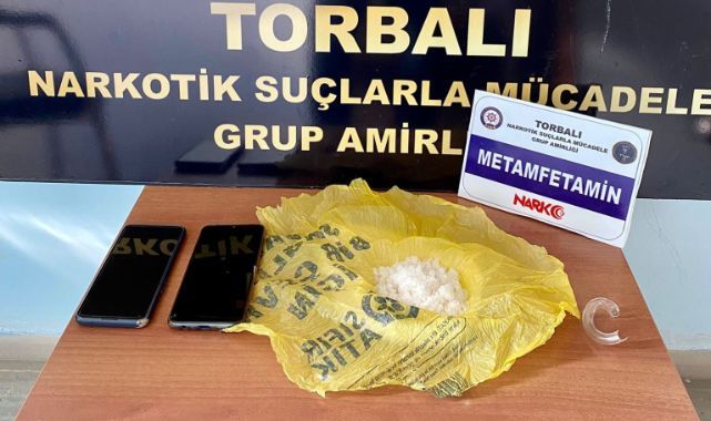 İzmir'in Torbalı ilçesinde uyuşturucu tacirlerini takibe alan polis ekipleri, aile görünümü veren H.A ve M.Y isimli şahısların kullanmış oldukları araç içerisinden 77 gram Metamfetamin uyuşturucu maddesi ele geçirilmiştir. Olayla ilgili gözaltına alınan iki kişi çıkarıldığı mahkemece tutuklandı.