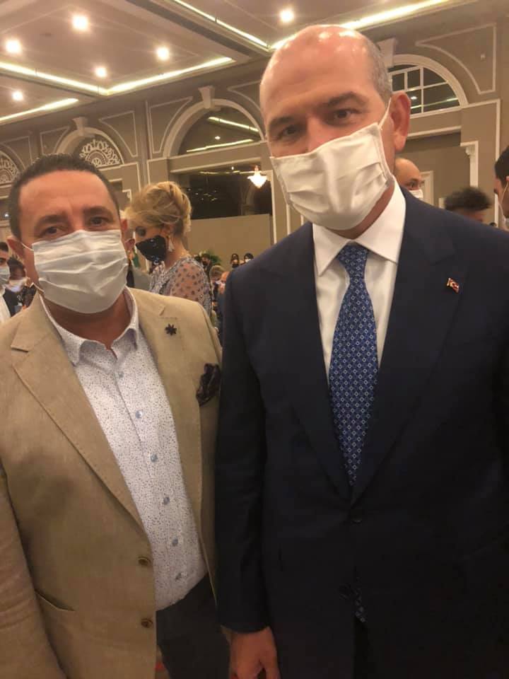 Törene katılan İçişleri Bakanı Süleyman Soylu, AK Parti İzmir Dış İlişkiler Başkan Yardımcısı Ayhan Turan ile...