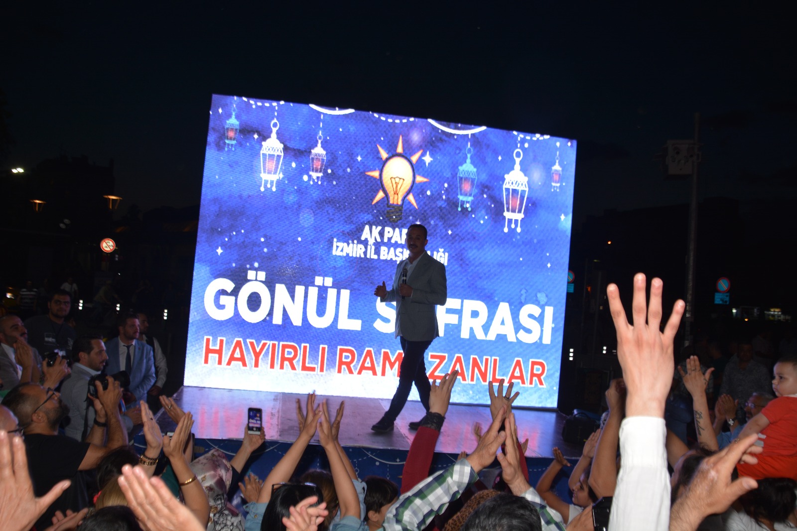 Ak Parti İzmir İl Başkanlığının Gönül Sofrası iftar programları Karşıyaka ile devam etti. Karşıyaka Çarşısında yaklaşık 5 bin vatandaşın katılımı ile coşkulu bir iftar programı gerçekleşti. Ancak günün sürprizleri vardı. Daha iftar alanına girerken sanatını icra eden bir sokak müzisyeni ile karşılaşan AK Parti İzmir İl Başkanı Aydın Şengül, bir süre müzisyenin çaldığı şarkıları dinledi ve şarkılara eşlik etti. Bir süre müzisyenle sohbet eden Başkan Şengül, ondan İzmir Marşını çalması talebinde bulundu. Müzisyen bu isteği kırmadı ve İzmir Marşına çalmaya başlayınca başta İl Başkanı Aydın Şengül olmak üzere tüm teşkilat mensupları ve iftara katılanlarda İzmir Marşına eşlik etti. Karşıyaka Çarşısı bir anda ‘İzmir’in dağlarında çiçekler açar’ sözleriyle inlemeye başladı.