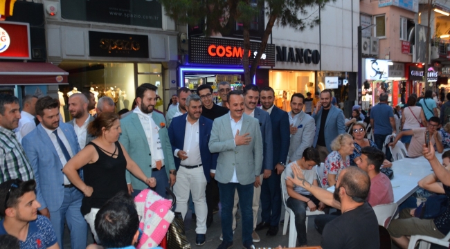 BÜYÜK TAKDİR TOPLADIİl Başkanı Şengül’ün bu davranışı iftara katılan ve Çarşı’dan geçmekte olan Karşıyakalılardan büyük takdir topladı. Günün bu ilk sürprizinin ardından ikinci bir sürpriz daha vardı. Karşıyaka doğumlu olan ve çocukluğunu Karşıyaka’da geçiren Ak Parti İzmir Milletvekili Adayı Milli Futbolcu Alpay Özalan, Karşıyakalılarla buluştu. ÇARŞI’DA ‘KAF SİN KAF’ COŞKUSU‘Kaf Sin Kaf’ tezahüratları içerisinde Karşıyakalılara hitap eden Alpay’ın bir müjdesi vardı. Vekil Adayı Alpay Özalan, Başbakan Binali Yıldırım’ın kendisine bir görev verdiğini belirterek, “Biliyorsunuz ben Altay’da oynarken, Süper ligde 3 takımımız vardı. Altay ile birlikte Karşıyaka ve Göztepe de Süper Ligdeydi. Altınordu ile İzmirspor ise alt liglerdeydi. Şimdi bakıyoruz maalesef Karşıyaka 3. Ligde… İşte Karşıyaka’yı yeniden ayağa kaldırmanın zamanı geldi. Çünkü ben bir İzmirli, Karşıyakalı olarak buradayım. Ben kısa pantolonla bu çarşıda gezmiş, büyümüş bir insanım. Bu Karşıyaka Çarşı esnafı da beni çok iyi tanır” dedi.