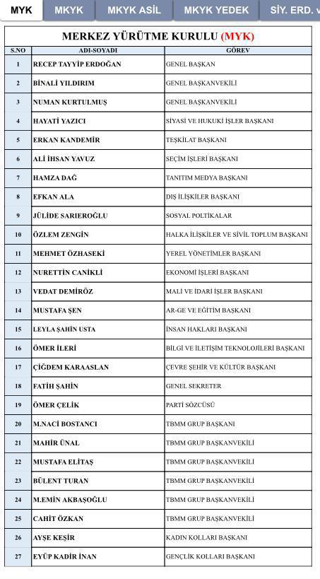 İşte AK Partinin7. Olağan Büyük Kongre sonrası belli olan A takımı: