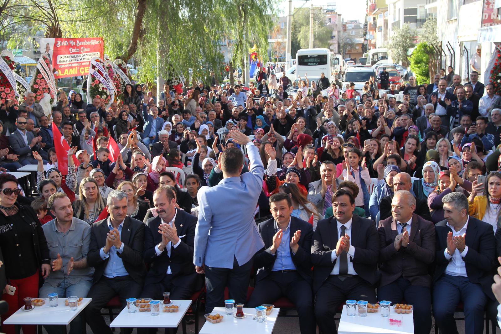 Buca Belediyesi’nin birkaç gün öne açılışını yaptığı pazaryerini hatırlatan Arslan, “Allah kimseye beton açılışı nasip etmesin. İnşallah bizlere boyasıyla, badanasıyla, kapısıyla, penceresiyle; içerisinde kumu çakılı, çimentosu olmayan kurdeleler kesmeyi nasip etsin. Ben yapacaklarımı anlatıyorum her yerde. 90 gündür sahalardayım! Siyaset yapmıyordum ama bir arkadaşımız beton açılışında gaza geldi ve dedi ki: Atma Mustafa, din kardeşiyiz! O kadar borcumuz yok.