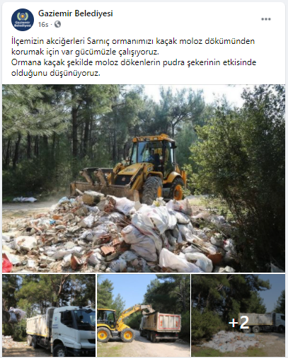 AK Parti Gaziemir Belediyesi Grup Başkan Vekili ve Meclis Üyesi Uğur İnan Atmaca da sosyal medya hesabından bu paylaşıma cevap verdi. Atmaca yaptığı paylaşımda, Gaziemir Belediyesi’ne sert tepki göstererek, “2 yıldır kalıcı hiçbir proje üretemeyen bu yönetim, Sarnıç ormanlarında kendi sebep oldukları moloz ve çöpleri toplamayı marifet saymaktadır” ifadelerine yer verdi.