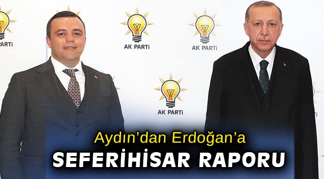 AK Parti Seferihisar İlçe Başkanı Ahmet Aydın, Cumhurbaşkanı Recep Tayyip Erdoğan ile görüşüp, ilçedeki sorunlarla ilgili oluşturdukları 'AK Defter'den yola çıkarak hazırladıkları raporu takdim etti. Cumhurbaşkanımız Recep Tayyip Erdoğan’ın Seferihisar ile ilgili konulara hâkim olması bizleri onurlandırdı” diyen Aydın, "İlçemiz için gece gündüz çalışmaya devam edeceğiz" dedi.