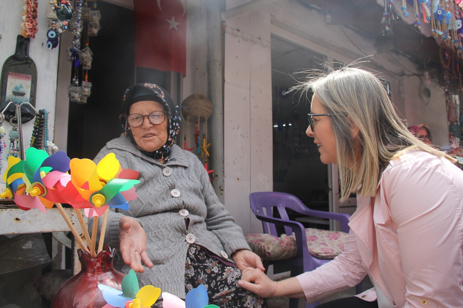 Nazar Köy’e Müjde!Nazar Köy’de nazar boncuğu yapımının unutulmaya yüz tutmuş meslekler arasında olmasını engellemek adına bölgede halk eğitim merkezi kurmak istediklerini ve Avrupa Birliği (AB) projesiyle desteklemek istediklerinin müjdesini verdi.