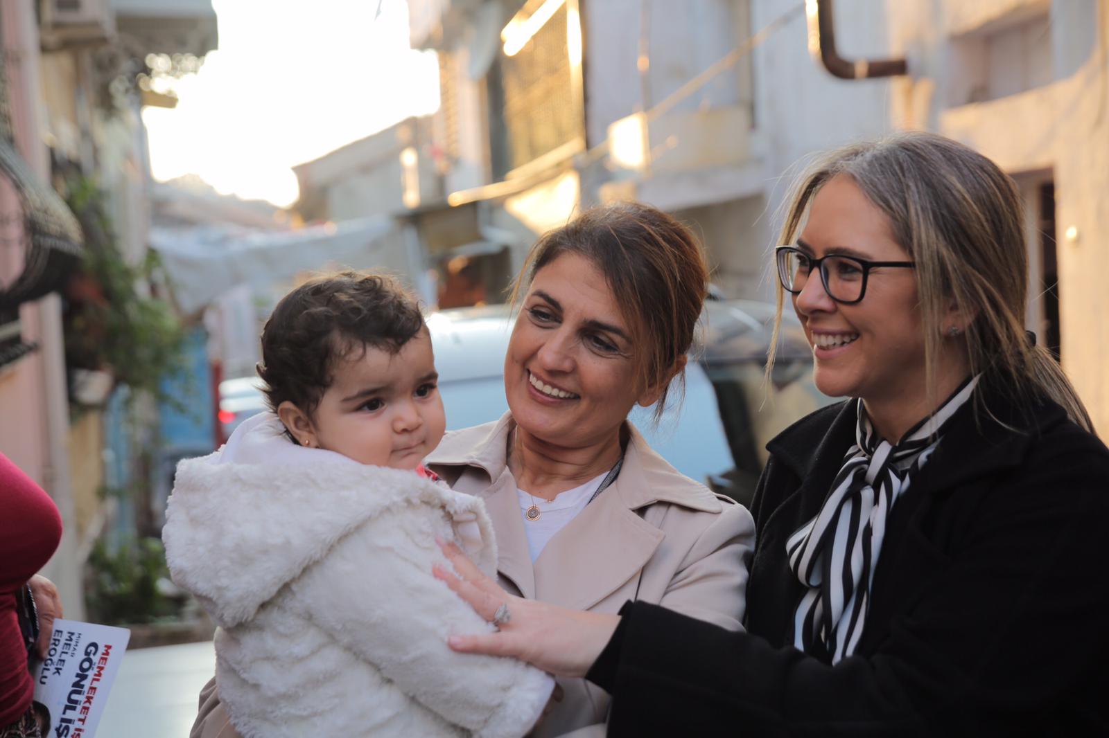 Gittiği her yerde mahalle sakinlerin sıcak ilgisiyle karşılaşan Eroğlu, “Kadınlarımızın ilgi ve desteğini hizmet olarak onlara geri vereceğiz. Çalışan kadınlarımıza ve çalışmak isteyen kadınlarımıza her türlü sosyal desteği sunacağız. Hep söylediğim gibi Yepyeni bir Konak’ı birlikte kuracağız” dedi.