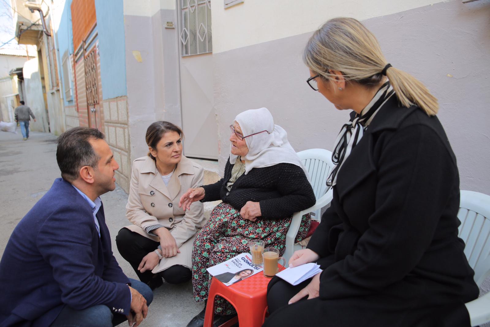Melek Eroğlu, AK Parti İzmir Milletvekili Ceyda Bölünmez Çankırı’nın da katılarak destek verdiği seçim çalışmaları kapsamında Tuzcu ve Ülkü Mahallesi sakinlerine çat kapı ev ziyaretleri gerçekleştirdi.Vatandaşlarla sohbet eden ve tüm sıkıntıları bildiğini dile getiren Eroğlu, “Gittiğimiz her yerde ve her sokakta ilgisizliğe mahkum edilmiş bir görüntü var. Hemşehrilerimizin hepsi bu konudan çok şikâyetçi. AK Parti’nin Belediyecilik anlayışında ilgisizliğe yer yok. Yerel yönetimlerin ana konusu insandır. Bizim de merkezimizde insan vardır. Hizmetlerimiz bu bakımdan insanlarımızın hepsine eksiksiz olarak verilecektir. Zaten bu nedenle diyoruz ki “Ne 1 Eksik Ne bir Fazla Konak’a olan aşkımızla”. Yani heryer hizmetlerden eşit olarak yararlanacak. Kimse “Bana bu hizmet neden gelmedi” demeyecek” açıklamasını yaptı.