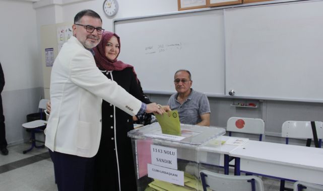 AK Parti İzmir İl Başkanı Bilal Saygılı, eşiyle birlikte geldiği okulda oyunu kullandı.