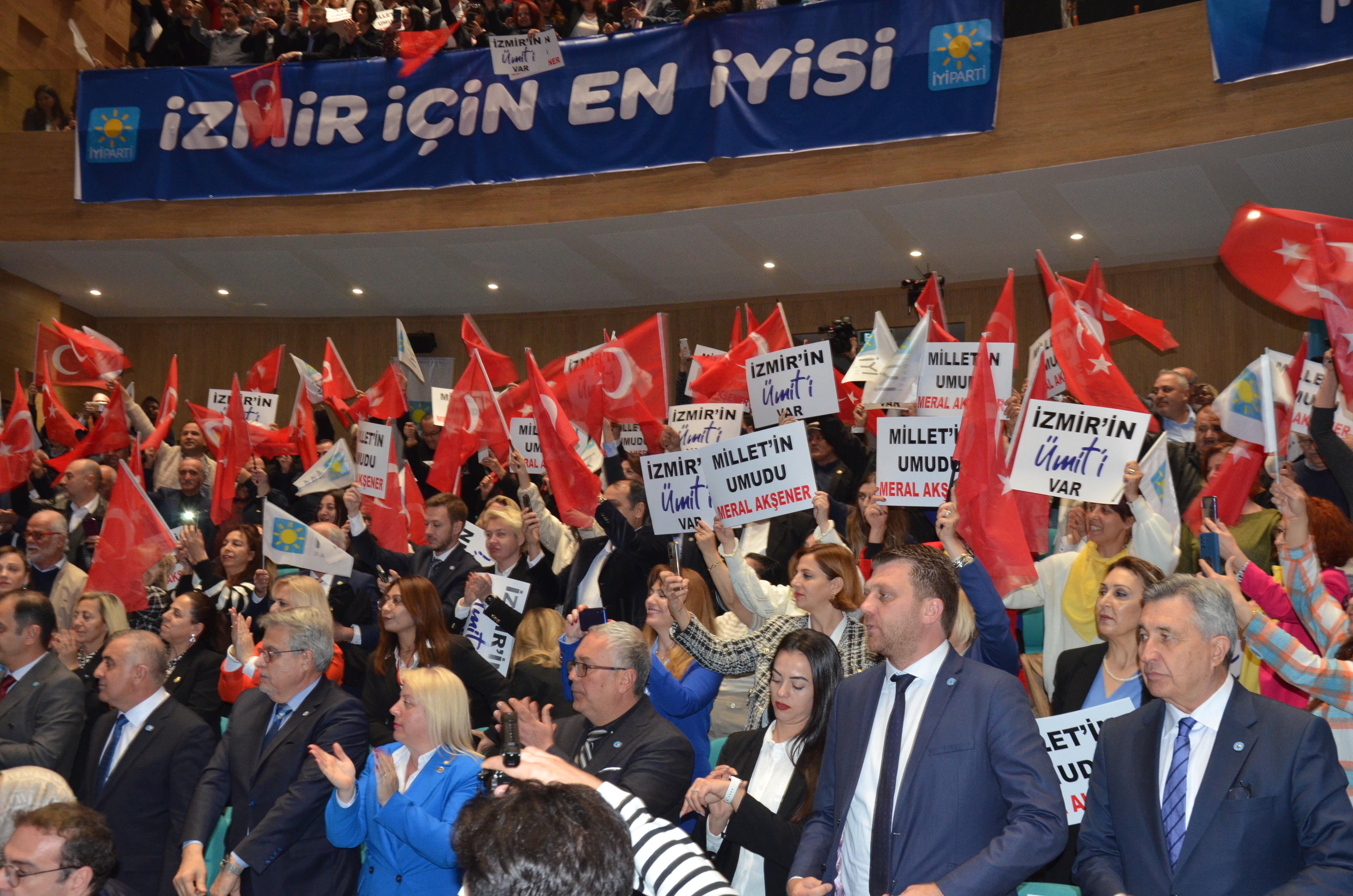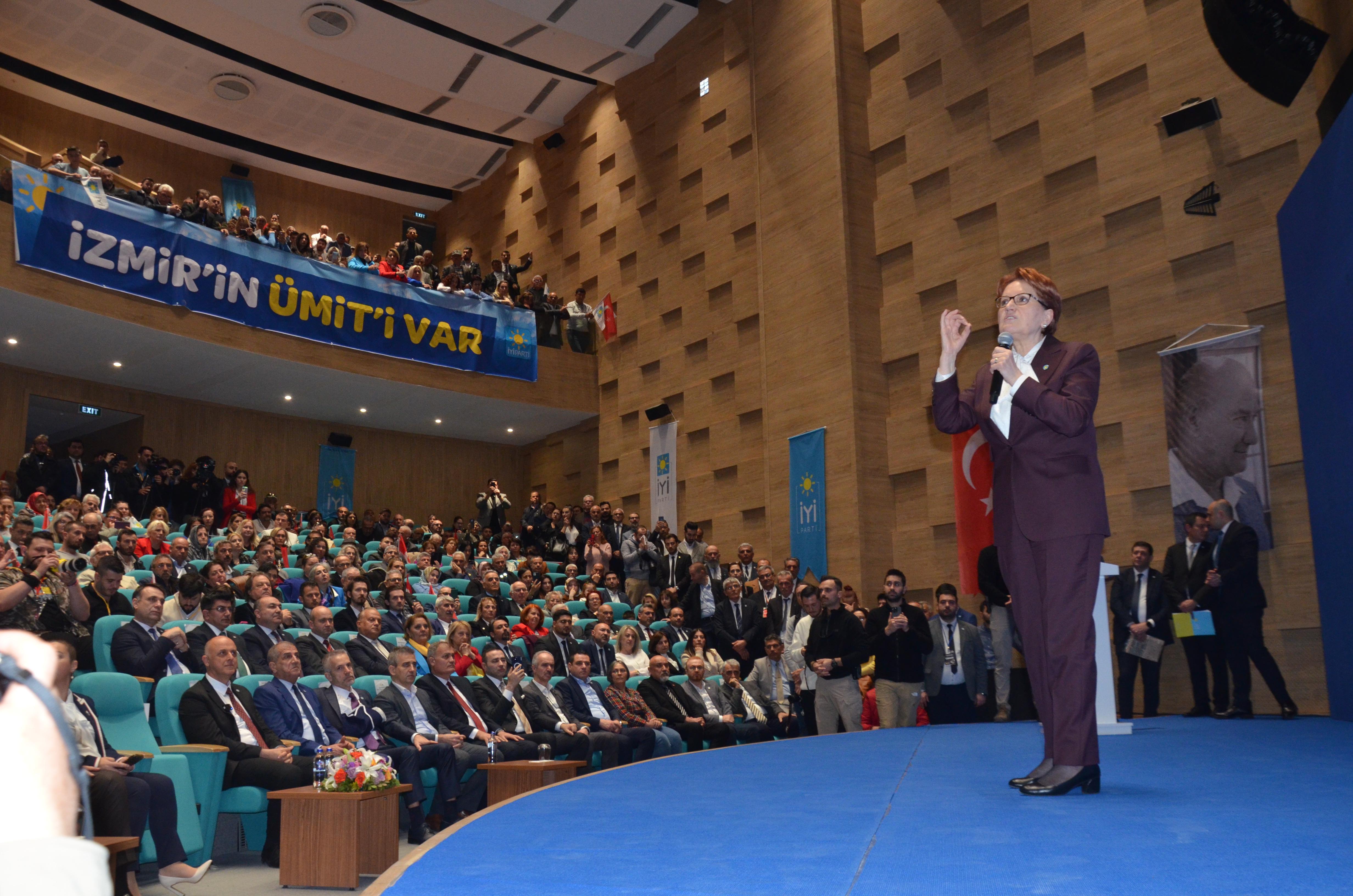 “TARAF OLMAK MECBURİYETİNİZİ ORTADAN KALDIRACAKSINIZ”İzmir’de anlayışın değiştirilmesi için destek isteyen Özlale, “Bugün İzmir’de bir karar vereceksiniz. Bu karar ya ‘İzmir benimdir kardeşim, ceketimi assam kazanırım’ diyen, canı istediği irtibatları kuran bir anlayışa ‘evet’ diyeceksiniz ya da Atatürk’ün bugün ki torunu sayabileceğimiz onun ilkleri adına ne gerekiyorsa yapacağından emin olduğumuz Ümit Özlale’ye ‘evet’ diyeceksiniz. Ne o tarafla ne bu tarafla olmak mecburiyetinizi ortadan kaldıracaksınız. Bu aynı zamanda Türkiye’de olan mecburiyeti ortadan kaldıracak. Türkiye’yi zor sokan anlayışı değiştireceksiniz. Umarım partimin ne istediğini doğru anlatabiliriz, sizde İzmirlilere doğru anlatabilirsiniz” diye konuştu.“SANKİ ALLAH ALLAH NİDALARIYLA CENGE GİDİYORUZ”Belediye seçimlerinin cenge dönüştürüldüğünü ifade eden Akşener, “İYİ Parti’nin misyonu mandayı kabul etmemektir, sen aday çıkarırsan o kazanır cümlesine uymamaktır. İyi adayları çıkar o kazansın sen kazan ben kazanayım. O gün nasıl var olanı geçerli olan reddetmişse Atatürk’ümüz, güvenmişse milletinize, o irfan feraset onunla beraber olmuşsa… Burada desem ki büyük amcası, büyük dedesi, her ailede bir şehir vardır. Böylesine yanmış yıkılmış bir ülkede yeniden şehitliği göze aldırabilmiş Atatürk. Alt tarafı belediye bu, alt tarafı bir seçim. Seni hiçbir zaman velinimet kabul etmemiş, birine göre gavur İzmir’in birine göre mecburiyet İzmir’sin. Hadi oradan be, hadi oradan! Ümit Özlale seçildi. CHP’nin belediye başkan adayı, ya da önceki belediye başkanlarıyla, AK Parti’nin İstanbul’da Ankara’da, Kocaeli’nde… Belediye başkanlığı yönetiminin ne farkı var? Belediye seçimlerinde sanki Allah Allah nidalarıyla cenge gidiyoruz. Ümit Özlale kazandığında laik hassasiyetleri yüksek, Atatürk’ü seven, demokrasiye inanan, hukukun üstünlüğüne inanan, adalet liyakate inanan İzmirlinin dediğinin dışında ne yapar ki! Tam tersine İzmirlilerin istediklerini yapar. Ben kendisine kefilim… Hiç kimseye, hiçbir şeye mecbur değilsiniz, siz patronsunuz öznesiniz seçmensiniz. Her 5 yılda bir belediye seçimleri olur. Seçin Ümit’i, beğenmezsiniz değiştirin. Maneviyat üzerinden korkularla kamplaştırırsanız kazandık zannedersiniz ama kazanmamış olursunuz. Arka sokaklarına gidin, İzmirli olarak kabul edilen, belli hassasiyetleri yüksek olan insanlara karşı hizmetsizliğin nasıl nefret oluşturduğunu görürsünüz. Bunu dengelemek için Ümit’i seçin” dedi.DOĞAN: İZMİR’İMİZİN BU MAKUS TARİHİNİ DEĞİŞTİRECEĞİNE YÜREKTEN İNANIYORUMİzmir’in makus tarihini değiştireceklerini ifade eden İl Başkanı Ülkü Doğan, “Türk milletini iki kutup arasına sıkıştığı iktidar ve ana muhalefetin konforlu alanda kurulu bu sistemden kurtulması gerekiyordu. Genel Başkanımız Meral Akşener bir seçenek sundu. Bütün hemşerilerimiz, mecbur değilsin 3’ncü bir yol var diyoruz. İzmir’de iyi belediyecilik ile tanıştıracak adaylarımızla halkımızın huzuruna çıkıyoruz. Kaderine terk edilmiş İzmir’imizin bu makus tarihini değiştireceğine yürekten inanıyorum. Bozuk iktidara hesap sorduğumuz gibi, İzmir kötü yöneten iktidara da hesap soracağız. Bir tarafta çeyrek asırdı yönettikleri şehri ha ettiği yere getirmeyeneler bir taraftan gavur diye dışlayanlar. Bir yandan belediyenin gücünü seçimde kullanalar bir yandan hükûmetin gücünü, siyasi şova dönüştürenler. Bozuk zihniyete de bozuk yola da mecbur değilsin İzmir. Kokuşmuş düzene de kokan körfeze de mecbur değilsin İzmir. Unutmasınlar İzmir hiç kimsenin hiçbir partinin tapulu malı, kalesi değildir. İzmir demokrasinin özgürlüklerin kalesidir. Kuruluşun ve kurtuluşun kalesidir. İzmir’e ve 30 ilçesine hakim adaylarımızla İYİ Parti İzmir’imize güneş gibi doğacak” şeklinde konuştu.