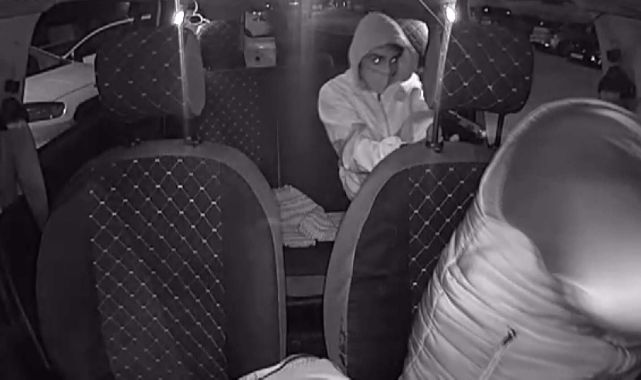 Saldırgan müşterinin taksi şoförünü oyaladığı anlar araç içi güvenlik kamerasına yansıdı. Bir süre yol gittikten sonra “Buca Belediyesi arka tarafında spor salonuna” gideceğini söyleyen saldırgana, taksi sürücüsünün “Abicim Gaziemir’deyiz” dediği ve saldırganın da “Orası olması gerekiyor" dediği duyuluyor.