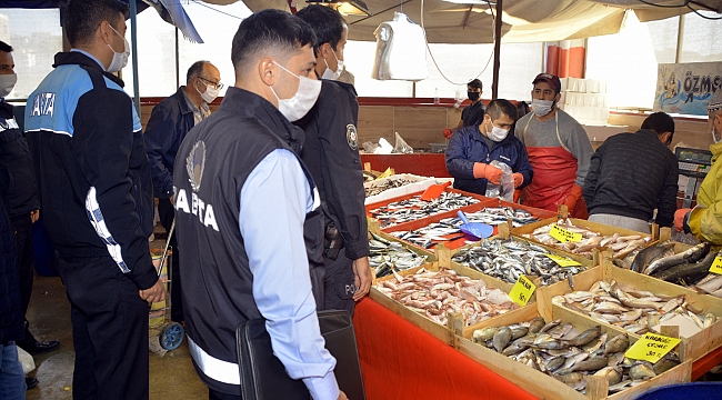 Zabıta ekipleri pazar alanına maskesiz girişlere izin