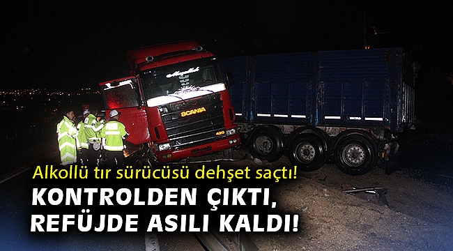 bir süre savrulan tır, refüje çıkarak asılı kaldı. Kazayı görenlerin ihbarı