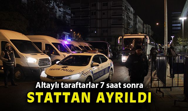 Göztepe-Altay maçında çıkan olaylar nedeniyle maç tatil edilirken Altaylı taraftarlar, yaklaşık 7 saat sonra polis eskortuyla stattan ayrıldı.