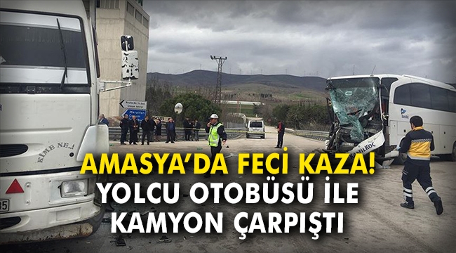 Amasya'nın Merzifon ilçesinde, yolcu otobüsü ile kamyonun