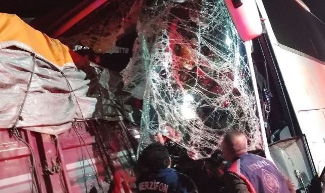 Amasya'nın Merzifon ilçesinde yolcu otobüsü ile kamyonun çarpışması sonucu meydana gelen feci kazada 2 kişi öldü, 20 kişi yaralandı.