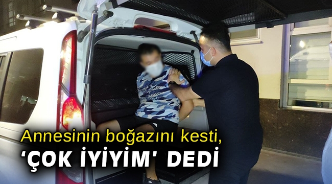 baygın düşen annesinin boğazını keserek öldürdü. Annesinin kanlar içerisindeki