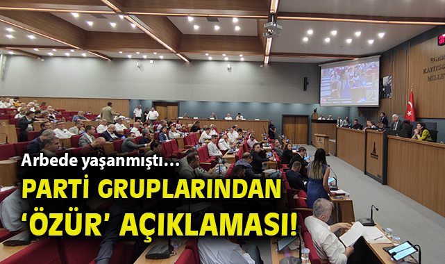 Arbede hakkında ilk olarak söz alan CHP Grup Başkanvekili Murat Aydın, “Pazartesi yaşanan tartışmalar sırasında maalesef hiç istemediğimiz görüntü ve durumlarla karşılaştık. Ne olursa olsun daha fazla tahammül ederek, dinleyerek, karşılıklı saygı göstererek tartışmaları kentimize yakışır sürdürmeliyiz. CHP olarak meclisteki bundan sonraki çalışmalarda da sözümüzü daha iyi dile getirmek üzerine bir tavrımız olacak. Bir kez daha yaşanan olaylar konusunda İzmir halkından özür diliyorum” şeklinde konuştu.