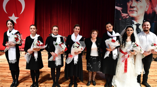 İsmet İnönü Kültür Merkezi’ni dolduran kadınlara seslenen İzmir Büyükşehir Belediye Başkanı Aziz Kocaoğlu’nun eşi Dr. Türkegül Kocaoğlu, dünyada birçok ileri ülkeden önce Mustafa Kemal Atatürk’ün Türk kadınlarına seçme ve seçilme hakkını verdiğini hatırlatarak, “Tüm dünyada faşizmin kol gezdiği, kadınların baskılandığı bir dönemde Atatürk, biz kadınları birey olmaya layık görmüş ve erkeklerle eşit olduğumuzu söyleyerek bize haklarımızı vermiştir. 5 Aralık 1934, bu yüzden tarihimizin en şerefli günlerinden biridir. Bu topraklarda yaşayan, aklı başında ve insanlık onuruna sahip kişiler, Atatürk’e nasıl düşmanlık duyar? Atatürk ve Cumhuriyet’e her şeyden önce dört elle sarılması gereken kadınlardır” şeklinde konuştu.