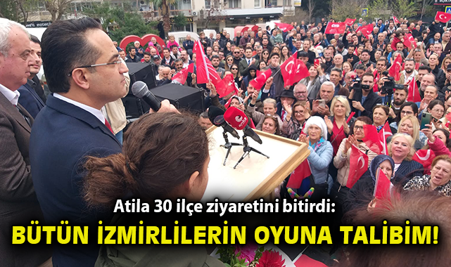 ‘’BUGÜN EVİMİZDEYİZ’’Bornova Meydanı’nda halkla buluşan Atila,’’ Bugün burada olan değerli hemşerilerime, katıldıkları için teşekkür ediyorum. Değerli hemşerilerim, Bornova Meydanı’nda, burada, yağmurdan dolayı hepimiz ıslanmıştık. Bereketli oldu. Bu bereket sayesinde de 29 ilçemizde de her gün miting alanına çevirdik. İzmir’imizin her yerini sizler gibi dostlarımızla birlikte ziyaretleri tamamlayıp, bugün evimizdeyiz. Tekrar hoş geldiniz, şeref verdiniz’’ dedi.‘’İYİ Kİ BORNOVALIYIZ, İYİ Kİ İZMİRLİYİZ’’Bornova’yı en iyi şekilde temsil ettiğini belirten Atila,’’ Doğduğum, büyüdüğüm, çocuklarımı büyüttüğüm, sizlerle beraber burada 47 yıldır nefes aldığım evimle birlikte olmanın mutluluğunu ve gücünü sizlerden aldığım değerli hemşerilerimi en iyi şekilde temsil etmeye çalıştım. 40 sene önce buradaki Kars- Halil Atila İlkokulu’na girdiğimden, 40 sene sonra bugün karşınızda İzmir Büyükşehir Belediye Başkan Aday Adayı olmanın onurunu ve mutluluğunu yaşıyorum. İyi ki Bornovalıyız, iyi ki İzmirliyiz’’ dedi.‘’KARDEŞLİK DUYGULARINI VE DAYANIŞMAYI ARTTIRMAK İÇİN YOLA ÇIKTIK’’30 İlçe ziyareti sonunda projelerini ve planlarını açıklayan Atila,’’ 2014’te yola çıktığımızda Bornova evimiz demiştik, şimdi de, 2024’te de İzmir evimiz diyoruz. İzmir’imizin 30 tane birbirinden değerli ilçesi arasında kardeşlik duygularını ve dayanışmayı arttırmak için yola çıktık. Bütün ilçelerimizi gezdik. İlçe Başkanlıklarımızı ziyaret ettik. Sivil Toplum Örgütleriyle, Meslek Odaları ile, Esnaf kuruluşlarıyla, değerli hemşerilerimizle bir araya geldik. Her ilçemizin farklı sorunları, desteklenmesi gereken ürünleri var. Beydağ’da kestane festivali yapmayı planlıyoruz, Tire’nin su sorunu ve eski tarihi yapılarını restore etmeyi planlıyoruz. Aliağa’nın otogar ve İZBAN hattıyla ilgili sorunları var. Kemalpaşa’mıza Metro kazandırmak, otopark sorununu, çözmek. Bergama’mızda İZBAN hattını Bergama’ya ulaştırmak, otogar sorunu bulunmakta. Küçük Menderes’te, Ödemiş’te, Tire’de, Bayındır’da hayvancılığı arttırmak. Tire Süt Kooperatifi, Bayındır Çiçek Kooperatifi gibi marka değerlerimizi artırmak. Her anlamda kalkınmak ve gelişmek için yola çıktık. Urla’mızı Metro ile buluşturmak. Karşıyaka’mıza, Bornova’mıza yaptığımız stadın daha güzeline kavuşturmak. Karaburun ve Selçuk’ta, Turizm Meslek Yüksek Okullarını büyütmek… Vatandaşımıza sosyal destek sağlamak, en önemli sorunlardan olan ulaşımı rahatlatmak, alt yapıyı daha kullanılır hale getirmek. Körfezimizi de hep birlikte İzmir’in gerdanı haline getirmek. Çocuklarımızın yelken yaptığı, ulaşımda vapur seferlerin arttığı, kent taksisi olarak Konak’tan, Karşıyaka’ya buluşturduğumuz bir dönem olsun diyoruz’’ diye konuştu.