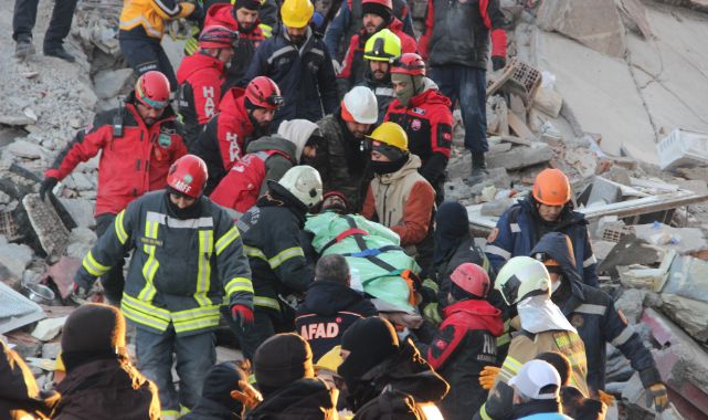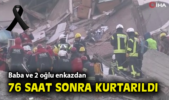 Ekiplerin aileye ulaşmasıyla birlikte ambulanslar enkaza yanaştı. Sedyeye konulan 60 yaşındaki baba Mithat Tabur, ekipler tarafından tekbirler eşliğinde indirilerek ambulansa alındı. Daha sonra ise 25 yaşındaki Mustafa Tabur indirilerek ambulansla hastaneye götürüldü. En son olarak da ekiplerle iletişim kuran Ersin Tabur indirilerek ambulansla hastaneye götürüldü. Enkaz altında kalan anneye de ulaşılmaya çalışılıyor.