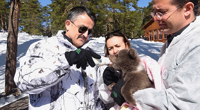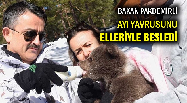 Tarım ve Orman Bakanı Pakdemirli, annesini kaybetmiş bir ayı yavrusunu kendi elleriyle besledi.