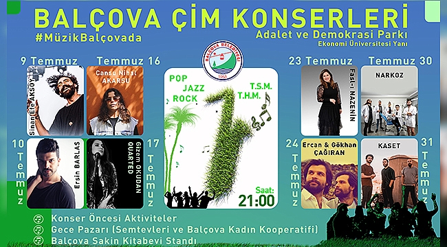 Sosyal aktiviteleri özlediklerini ayrıca müzik ile uğraşan sanatçılara da destek vermek istediklerini ifade eden Balçova Belediye Başkanı Fatma Çalkaya “Özellikle yaz aylarında tatile gitme imkanı olmayan gençlerimiz çok bunaldı. Başta onlar olmak üzere kendini genç hisseden tüm vatandaşlarımız için bu Konserleri gerçekleştirmeye karar verdik. Konser öncesinde değişik müzik yarışmalarımız, konser alanının yakınında Semtevlerimiz ile Kadın Kooperatifimizin gece pazarı ayrıca bir de kitapseverler için kitap standımız olacak” dedi.