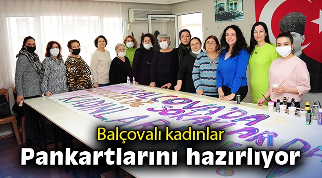 yürüyüş için Balçovalı Kadınlar da kendi düşüncelerini yansıtan pankartları