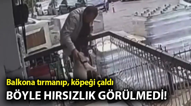 İzmir'in Karşıyaka ilçesinde bir kişi, tırmandığı balkonda bulunan köpeği alıp kayıplara karıştı. O anlar güvenlik kamerası tarafından görüntülenirken, köpeği çalan kişiyi yakalama çalışmaları sürüyor.