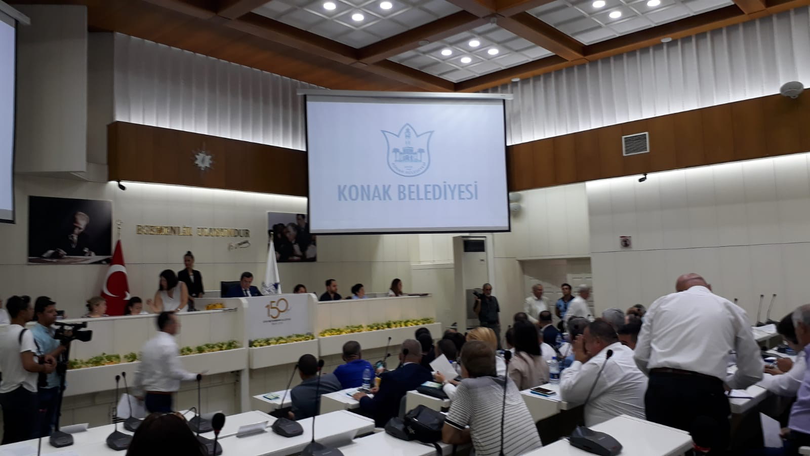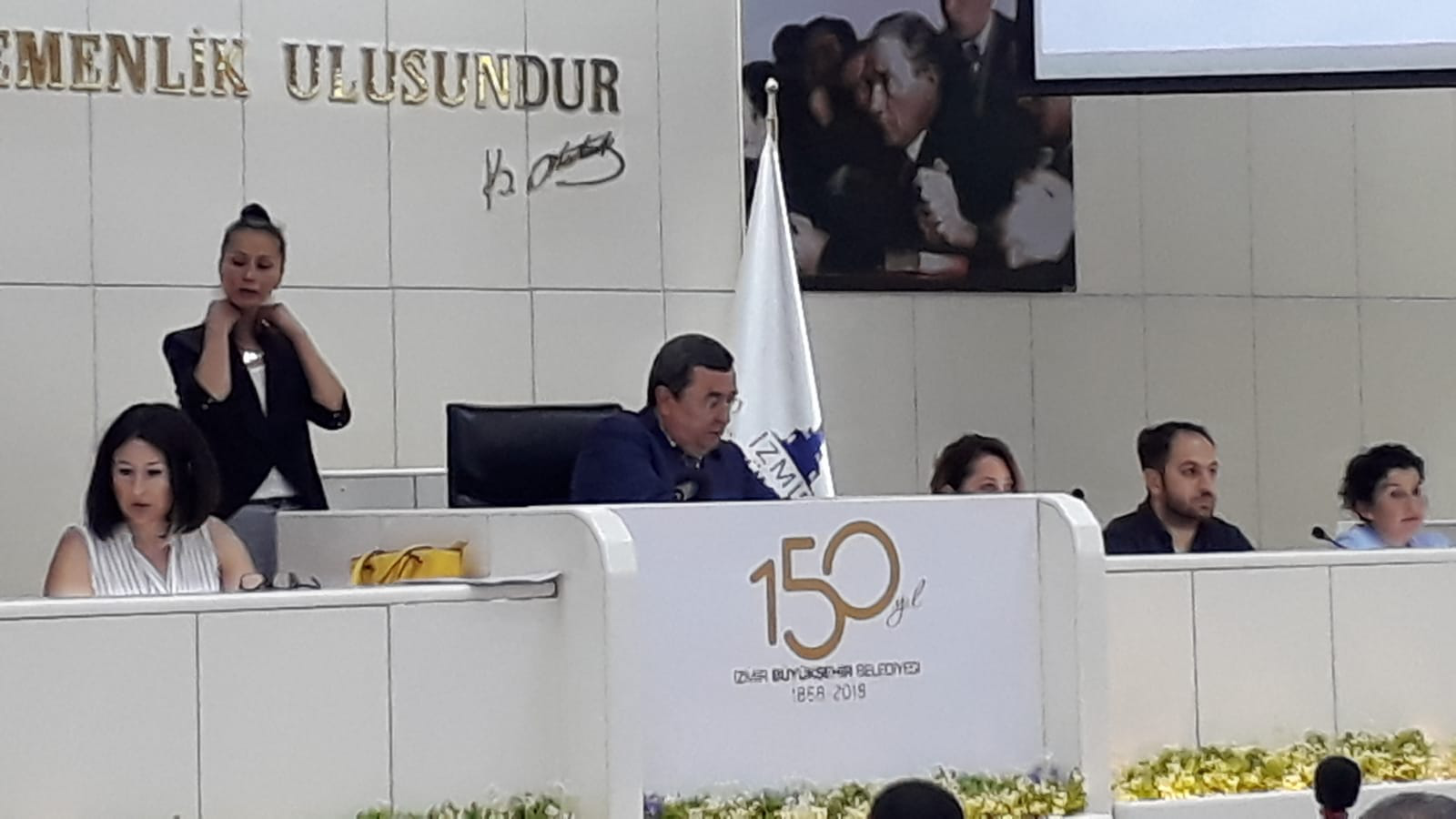 “Bu belediyeyi baya yaralayacak bir önerge yani bununla ilgili değerli arkadaşlar keşke ekonomi dört dörtlük olsa her şey yolunda gitse fakat bu önergede şöyle bir şey var belediyenin şu andaki gelirlerinde bile zorlanıyoruz. Onun için belediyenin şu anki gelirlerinde bile indirim yapmamız mümkün değil. Çünkü hem yatırım hem çalışanlarımızın maaşı hem de ileriye dönük yapılacak projelerle ilgili bu işi indiririz burada bir siyasi hareket yaparız ama doğrusu bunun devam etmesinden yanayım… Bizim belediyenin iller bankası paylarında yüzde 40 bir artış olursa kesinlikle yaparız. İller Bankası paylarımız yaklaşık 3 aydır kesintiye uğrayarak bütçemize geliyor. O bile bizi çok zorluyor! Onun için devletimizin topladığı vergilerden gelen iller bankası paylarında bile ekonomik sıkıntıdan dolayı vergi toplanamadığı için belediyeden gelen kaynakta da çok büyük, yüzde 20 oranında düşük olarak geliyor bize… Onun için bu önergenin gündeme alınıp alınmaması konusunda oylama yapacağım.”