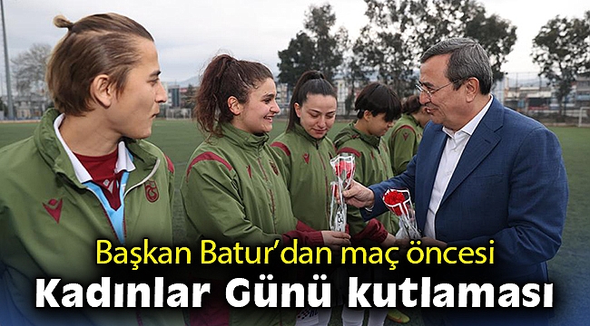 Konak Belediyesi Kadın Futbol Takımı, Turkcell Kadın Futbol Süper Ligi’nin on üçüncü haftasında Trabzonspor’u konuk etti. Atatürk Stadı 1 No’lu yan sahada gerçekleşen karşılaşma öncesi Konak Belediye Başkanı Abdül Batur, iki takımın oyuncularının, teknik ekip, yönetici ve hakemlerin 8 Mart Dünya Kadınlar Günü’nü kutladı. Oyuncalara karanfil veren Başkan Batur, “Konak’ımızın gururu Kadın Futbol Takımımız, şehrimizde konuk etmekten mutluluk duyduğumuz Trabzonspor Kadın Futbol Takımı ve tüm liglerde mücadele eden kadın futbol takımlarının değerli oyuncu ve teknik ekiplerinin Kadınlar Gününü kutluyorum. Kadın sporcularımız tüm branşlarda başarılarıyla göz dolduruyor, örnek oluyor. Hepsi pırıl pırıl gençler ve arkalarından gelen yeni nesile de örnek olma misyonuyla Türkiye’de spor ve futbol adına çok önemli bir iş yapıyorlar. Kadın Futbol Takımımızı takip eden U-13 takımız da 23 Nisan Futbol Turnuvası’nda finale çıktı. Onları da yürekten kutluyorum. Kadınların her alanda varlığını görmek, sırf kadın olduğu için ‘sen yapamazsın’ diyenlere en güzel yanıt. Meslek, siyaset, yönetim kadroları, sanat, spor ve toplumun her noktasında kadın ve erkeğin eşit yer alması gerektiği düşüncesiyle hareket ediyoruz. Kadının mücadelesi, insan hakları mücadelesidir. Bu haklı mücadelede yanlarında, omuz omuza yer alıyoruz” diye konuştu.