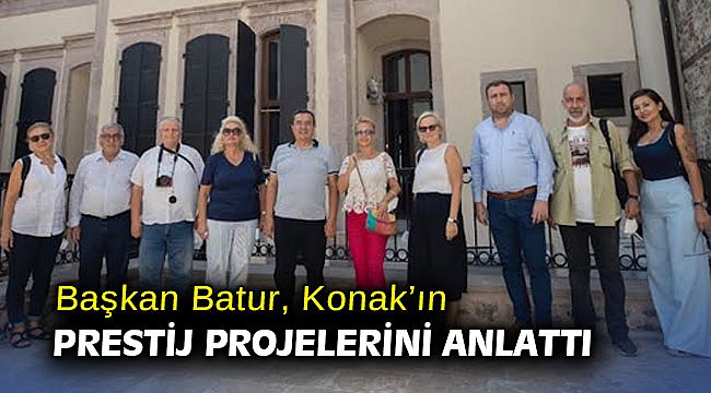 “Konak’ın her köşesi belediye hizmetlerinden yararlanacak”Hizmet üretirken dezavantajlı bölge ve grupları ön planda tuttuklarını, eğitim ve sosyal imkanlar başta olmak üzere fırsat eşitliğine önem verdiklerini dile getiren Başkan Batur, belediyenin yatırımlarını anlattığı inceleme gezisinde şöyle konuştu:“İnsan odaklı yerel yönetim anlayışıyla hizmet veriyoruz. Konak, İzmir’in tarihi dokusuna ev sahipliği yapan en büyük ilçe. Kent bilincini öncelikli tutarak halkımıza, gençlere hizmet vermeye, ihtiyaç duydukları her konuda yardımcı olmaya devam edeceğiz. Yaptığımız projelerde insan yaşamına saygılı, çevreye duyarlı bir anlayışla hareket ediyoruz. Tamamlanan projelerimizin yanında halkımızla buluşturmak için gün saydığımız projelerimiz de var. Önceliğimiz hizmetlerimizden, kent insanımızın eşit şartlarda yararlanabilmesi. Bu nedenle rotayı bilhassa daha dar ve orta gelirli semtlerimize yönelterek, eksiklerini tek tek tamamlıyoruz. Merkez ilçe olmanın tüm sorumluluklarını yerine getirirken, halkımızın mahallesinde, semtinde tüm belediye hizmetlerinden yararlanmasını önemsiyoruz. Her semtimizde pazar yeri, kreş, eğitim salonları, spor salonları, kadınlarımıza el becerileri kazandıran mekanlar mutlaka olmalı. Tek tek bu kompleksleri semtlerimize kazandırma gayretindeyiz. Tek derdimiz Konak’a hizmet. Bu amaçla ve bu dayanışmayla daha birçok adım atacak, ilçemize birçok tesis kazandıracağız. Bu dayanışmadan kazanan Konak olacak”Eşit yaklaşım, ortak değerlerYerinde gördükleri projelerin İzmir’in merkez ilçesi Konak’ın tarihi dokusunu daha da zenginleştireceğine inandıklarını belirten İzmir Gazeteciler Cemiyeti Başkanı Dilek Gappi de Başkan Batur’a gezi için teşekkür ederek, “Kentin sorunlarına dikkat çeken doğru projelerin ortaya konularak sorunların çözülmesi hepimiz için önemli. Hizmet ve çalışmalarda kent insanına eşit yaklaşan, temel değerlerde buluşturan anlayışı önemsiyoruz. Kentin merkezinden öte çeperlerin birçok hizmete ihtiyacı var. Bugüne kadar örnek işbirlikleri gerçekleştirdiğimiz, meslek ve meslektaşlarımıza karşı duyarlılığı ile tanıdığımız Konak Belediyesi’ne ve Abdül Batur Başkan’a hem teşekkür ediyor hem de çalışmalarında kolaylıklar diliyorum” dedi.