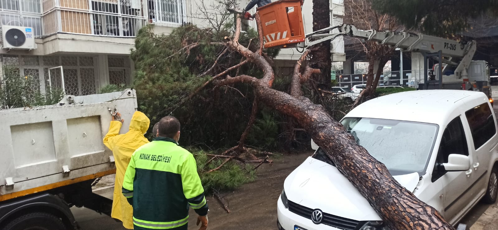 Metrekareye 36.3 kilogram yağışın düştüğü Konak’ta, Konak Belediyesi Fen İşleri, Temizlik İşleri ile Park ve Bahçeler Müdürlüğü ekipleri tam kadro çalışıyor. Gece boyu nöbet tutarak, teyakkuzda olan ekipler, gelen tüm ihbarları değerlendirerek, ağaç devrilmesi ve taşkınlara anında müdahale etti. Vatandaşların can ve mal güvenliği için ekipleri yönlendirerek, çalışmaların koordineli bir şekilde sürdürülmesini sağlayan Konak Belediye Başkanı Abdül Batur da sahaya indi. Riskli bölgelerde önlemleri artırarak, sıkıntının yaşandığı yerleri tespit için sahaya inen Başkan Batur, taşkınlardan etkilenen alanlarda incelemelerde bulundu. Vatandaşları yalnız bırakmayan Batur, işyerlerini su basan esnafı da ziyaret etti.