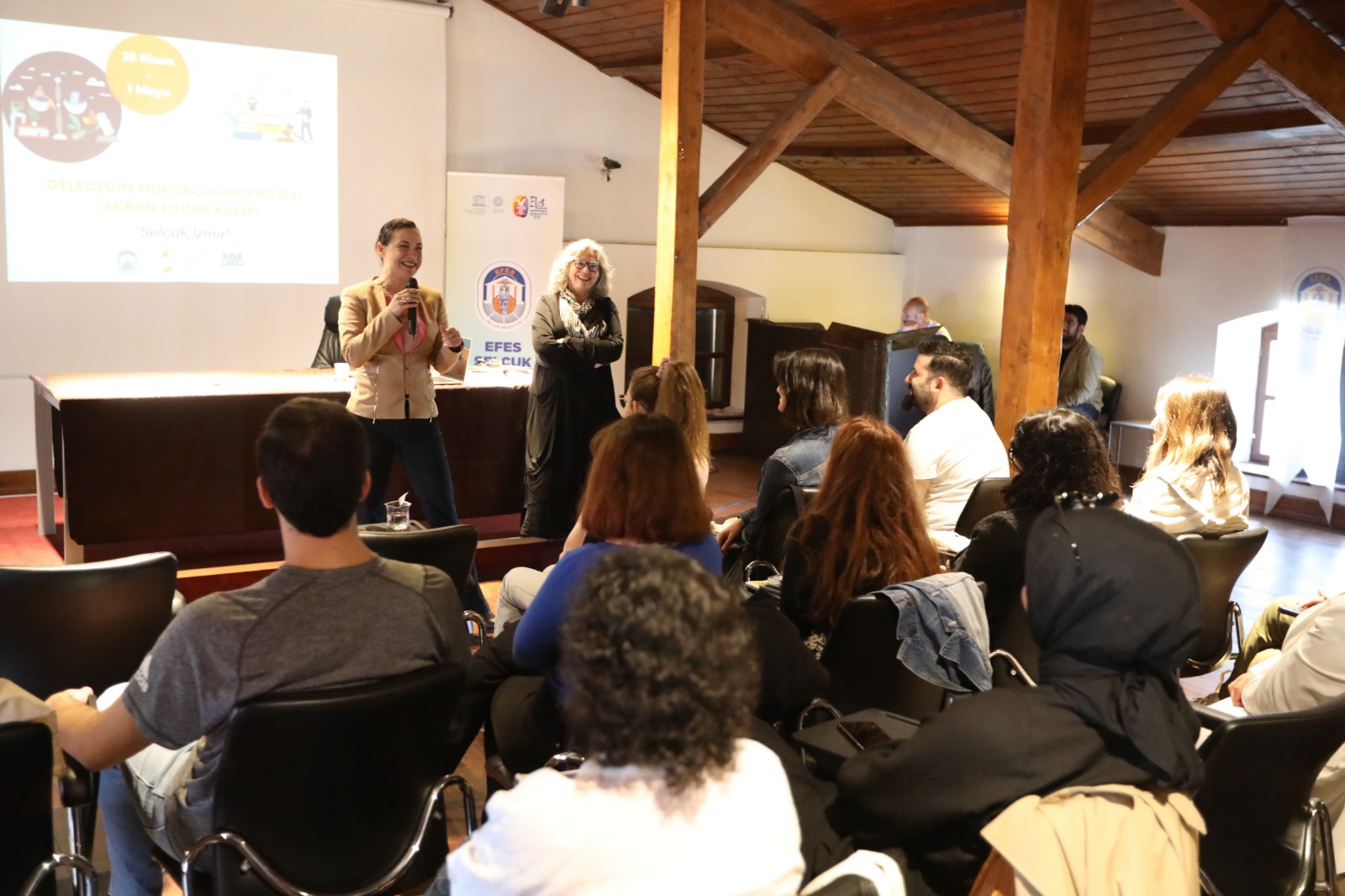 ÖNCE İNSAN OLMAKKampa katılan öğrencilerin büyük bir kısmının kadın olduğuna dikkat çeken Başkan Ceritoğlu Sengel; “Doğru bir kente geldiniz. Çünkü tam olarak tarihin esasındasınız. O kadar ki bu iş 8600 yıllık kesintisiz bir tarih demek. Ve de bir kadın kentindesiniz. Kibele’den başlayan Artemis'e devam eden ve her şeyden önce Amazonlarla esasen başlayan ve seyri içerisinde de Meryem Ana’nın da burada olmasıyla dişi ve bereketli topraklardasınız. Çok enteresan bahsettiğim söylemlerin hepsi 8600 yıl önceki bir tarihe dayanıyor olsa da ancak 21.yüzyılda bir kadının belediye başkanı olabilmiş bir yerdesiniz. Bunu neden söylüyorum? Belediye başkanlarının sadece yüzde 3’ü kadındır, mecliste de sadece yüzde 12- 13 gibi bir temsili vardır kadının. Birçok noktada da temsilimizi arttırabilmemiz adına yapmamız gerekenler daha cesur davranmamız gerekenler, atacağımız adımlardan korkmamamız gereken anlar var. Bu anlamda bizlerin buluşmasının önemli olduğunu düşünüyorum. Çünkü eğer tamlamanın içerisinde adalet varsa, adil olmak varsa, eşitlik varsa daha özgür bir yarın gibi bir ümidimiz varsa her şeyden önce kimliklerimize sahip çıkmak da var. Bu kimliklerimizin içerisinde önce insan olmak, orijin kesinlikle o” dedi. YAŞAMIN KENDİSİNİ SEÇTİNİZHukuk öğrenimi görmenin bireyi birçok yönden donanımlı hale getirdiğini belirten Başkan Ceritoğlu Sengel; “Yaşamın kendisini görüyorsunuz aslında. Hukuk dediğiniz şey biraz öyle. Her şeyden anlıyor hale gelirsiniz. Hayatın kendisi içerisinde hukuka ihtiyacımız var zaten. Böyle bir gerçeklik var. Kendi hakkımızı savunmada, herhangi bir sıkıntıda bile işin içerisinde hukuk girer. O yüzden doğru bir fakülte seçtiniz. Çünkü siz yaşamın kendisini seçtiniz aslında. İnsanlar arasındaki ilişki bir hukuk. Ağzınızı açtığınız andan itibaren başlar zaten hukuk. O anlamda bundan sonraki hayatınızın evrelerinde ne olmak isteyeceğinize siz karar vereceksiniz. Tavsiyemdir, her zaman zevk aldığımız işi yapın” dedi.Hukuk öğrencileriyle hukuka dair filmler üzerine de konuşan Başkan Ceritoğlu Sengel; “Hayat böyle bir şey. İzlediğiniz bir film, okuduğunuz bir şiir, seyrettiğiniz bir tiyatro, dinlediğiniz bir konuşmacı, örnek aldığınız ya da almadığınız, yanlış olduğunu düşündüğünüz ya da düşünmediğiniz ama hayatına vakıf olduğunuz birisi bir yerden size feyz olur. Eğer bir nebze feyz olabildiysem ne mutlu bana. Teşekkür ederim, tekrar Efes Selçuk’a hoş geldiniz” dedi.