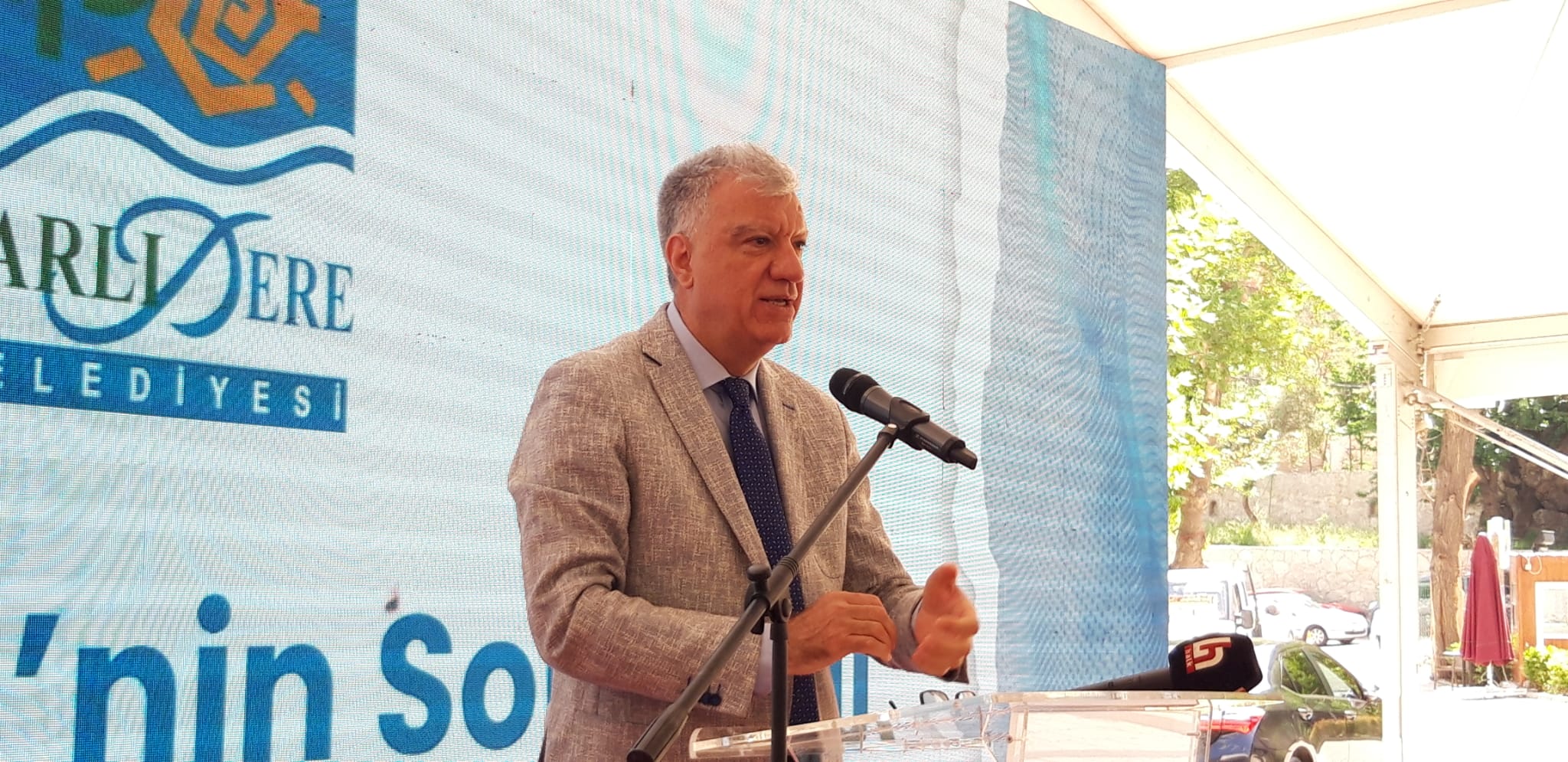 Sahilevleri’ne yapılacak olan tenis kortları ile ilgili son durumu aktaran Engin, "Sahilevleri bölgesinde kentlilerin talep etmesi üzerine bize ait olan alaya 4 kortun bulunduğu içinde spor salonun kafenin olduğu bir alan için temel atmayı ve 1 yıl içerisinde kentlilerin hizmetine sunmayı hedefliyoruz. Bu İzmir'in en büyük tenis tesis olacak. Umarız bunun açılışını da hep birlikte yaparız" ifadelerini kullandı.