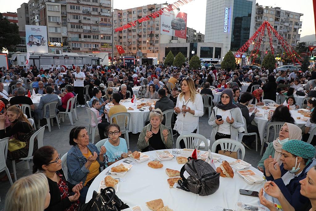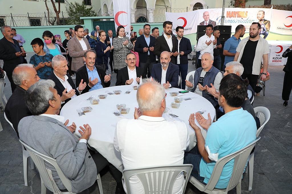 Güldoğan: “Öncelikle Bornovamız ve Bornovalı hemşerilerimiz özelinde tüm ülkemizin ve İslam Âleminin Ramazan Bayramını içtenlikle kutluyorum. Mübarek Ramazan Ayını geride bıraktık; yüce Allah, tuttuğumuz oruçları, ibadetlerimizi ve dualarımızı kabul etsin, bugün ise hep birlikte bayramı karşılıyoruz. Bayramlar dargınların barıştığı, uzaktakilerin sevdikleriyle kucaklaştığı, neşe ve huzur günleridir. Bu vesileyle mübarek Ramazan Bayramı’nın tüm ülkemize ve milletimize sağlık, huzur ve mutluluk getirmesini temenni ediyorum.Bizler, öncesinde de olduğu gibi, Ramazan ayı boyunca da tüm kademelerimizle sahadaydık, hemşerilerimizle bir ve beraber olmaya gece-gündüz demeden gayret gösterdik. Tüm teşkilatımıza, tüm kademelerimize; Kadın Kollarımıza, Gençlik Kollarımıza, Yönetim Kurulu Üyelerimize, Mahalle Başkanlarımıza, teşkilatımızın her bir ferdine ayrı ayrı teşekkür ediyorum. Bu mübarek ayda, gece ve gündüz durmaksızın Bornovamızın tüm mahallelerinde faaliyet gösterdiler. Kadın Kollarımız bir ay boyunca tüm mahallelerimizde ev ziyaretleri yaptılar, gönül sofraları kurdular, iftarlarını her akşam birden fazla evde konuk olarak birlikte yaptılar. Gençlik Kollarımız her akşam Bornovamızın merkezi noktalarında, iftara 5 kala programlarıyla iftar saati evlerine yetişememiş vatandaşlarımıza iftariyelik dağıtarak oruç açmalarına vesile oldular. Ana kademe üyelerimiz, Kadın Kollarımız ve Gençlik Kollarımız tüm mahallelerimizde, mahalle başkanlarımız ile koordineli olarak ihtiyaç sahiplerine Ramazan kolisi dağıtımlarını yaptılar. Hem mahallelerimizde geniş katılımlı, hem de hemşerilerimizi ziyaret ederek evlerde, İl Yöneticilerimizin de katılım sağladığı iftar programları düzenledik. Milletvekillerimizin katıldığı sahur programları düzenledik. Bornova Cumhuriyet Meydanı’nda, büyük bir gönül sofrası kurduk ve alanda gönüldaşlarımızla dolduk, taştık. Şehit ve Gazilerimizi ziyaret ettik, Polis Haftası’nda güvenlik güçlerimizi ziyaret ettik, Bornova’daki Sivil Toplum Kuruluşlarımızla süreli temas ettik, tüm iftar davetlerine icabet ettik, iftarda ve iftar sonrasında sık sık bir araya geldik; kısacası tüm vatandaşlarımızla mübarek Ramazan ayı boyunca hemhal olduk. İnşallah bu bayram, tüm ülkemiz vatandaşlarının dualarının kabulüne, tüm dünyanın barış ve huzura kavuşmasına vesile olsun. Ramazan Bayramınız şeker tadında kutlu ve mübarek olsun.” Dedi.
