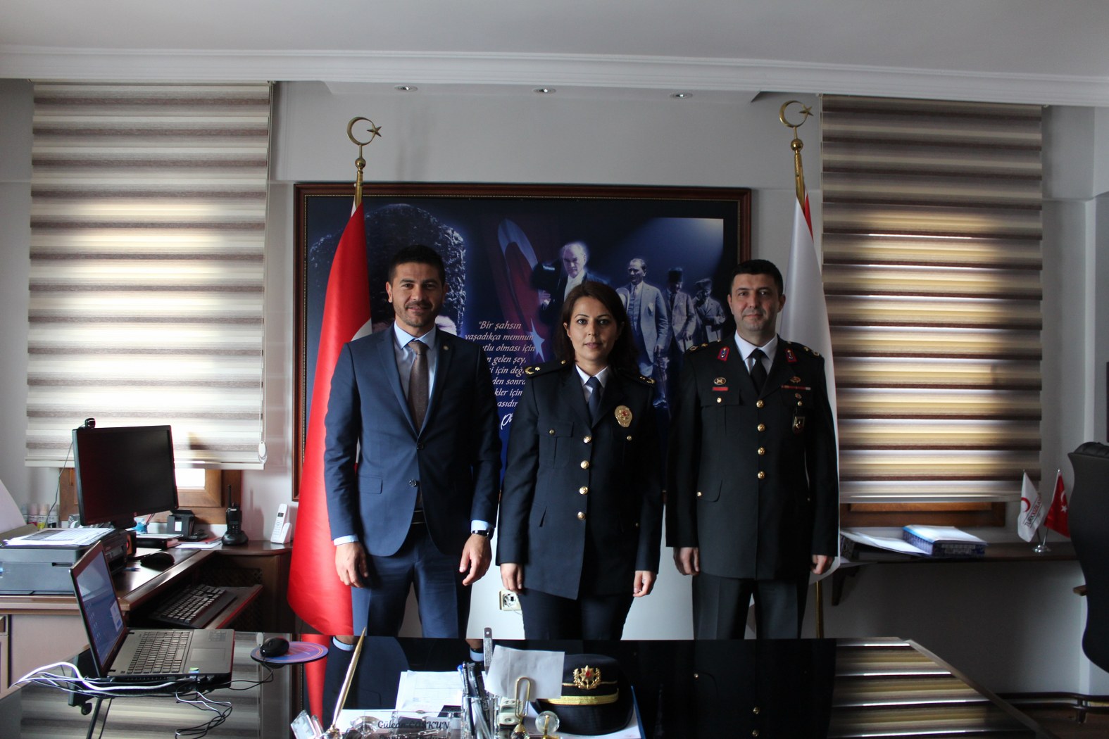 Tören, yapılan saygı duruşu ve İstiklal Marşı’nın ardından, İlçe Emniyet Müdürü Gülcan Coşkun’un Atatürk Anıtı’na çelenk sunumu ile devam etti. Törende Gülcan Coşkun; "Ulu önderimiz Atatürk'ün ilke ve inkılaplarını ışığımız kabul edip, Gençliğe Hitabesi’nde söylediği gibi gücümüzü damarlarımızdaki asil kandan alarak milletimizin huzuru ve güvenliği için gece gündüz durmaksızın çalışmaya devam edecektir. " dedi.